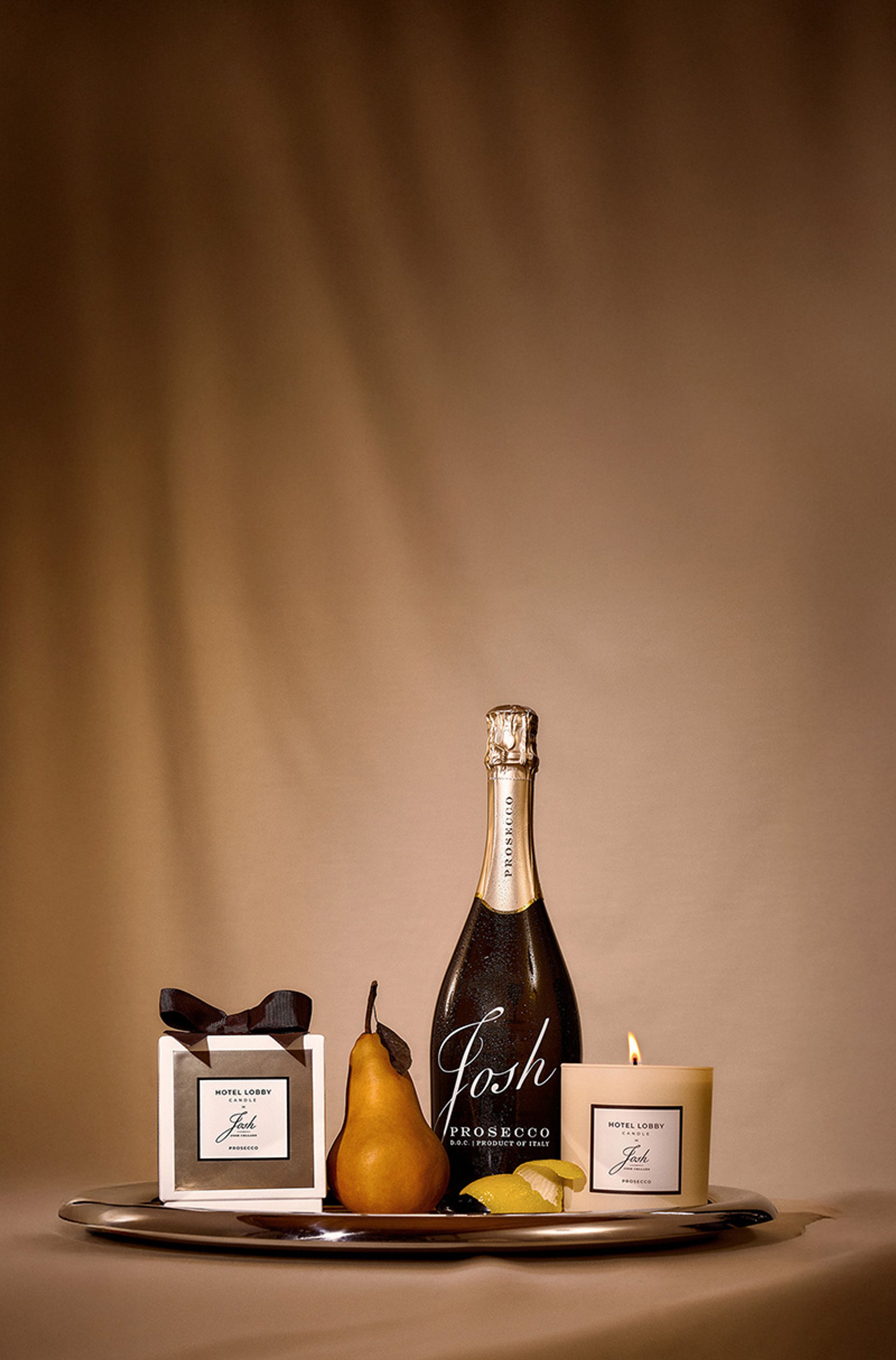 The Hotel Lobby Candle x Josh Cellars Prosecco Set is available exclusively at Reserve Bar.