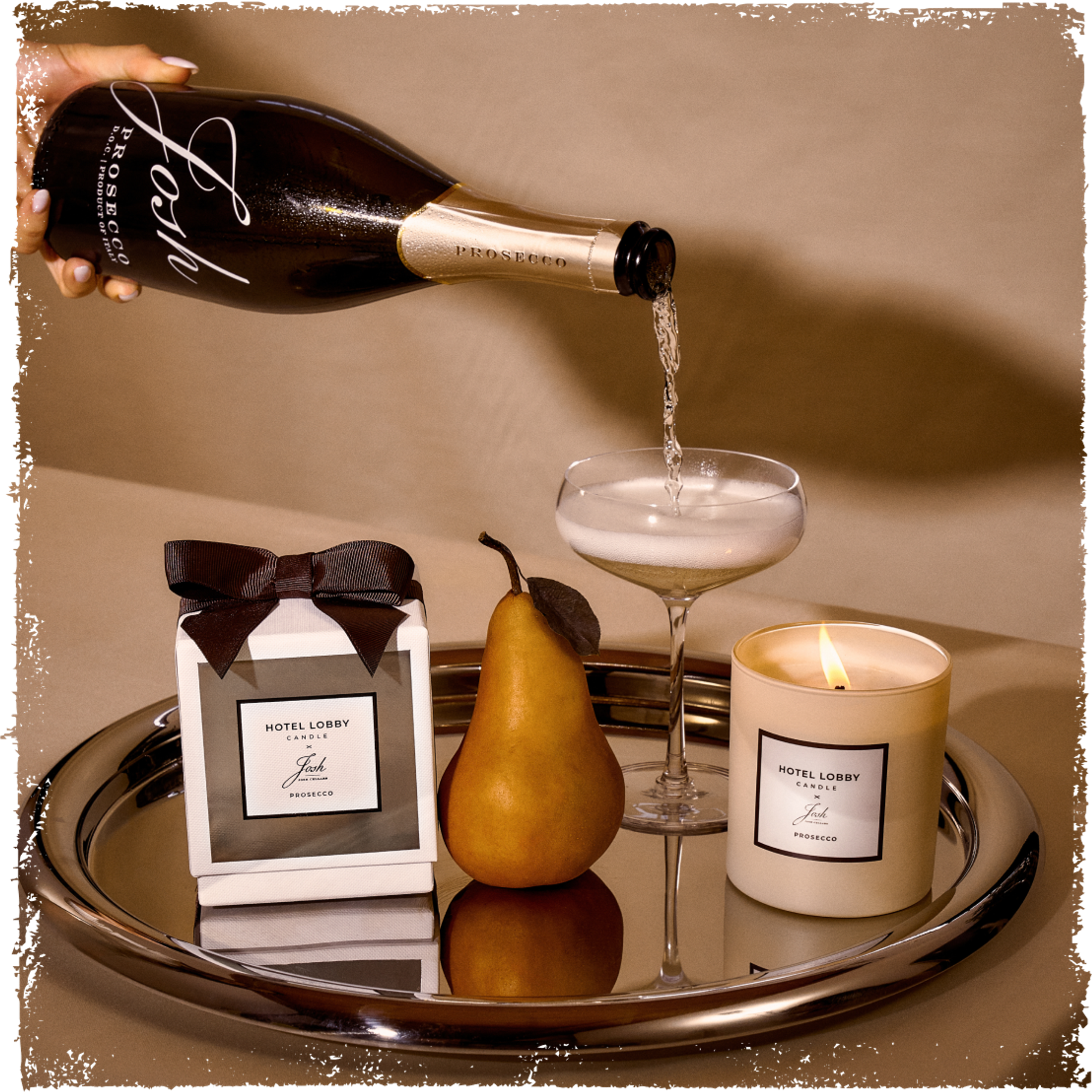 This season, Josh Cellars and Hotel Lobby Candle are raising the bar on holiday hosting. Inspired by the rolling vineyards of Italy’s Prosecco region, our limited-edition Prosecco candle is crafted to pair perfectly with a glass of Josh Cellars Prosecco and transforms any moment into a celebration – just pop the cork and strike a match.